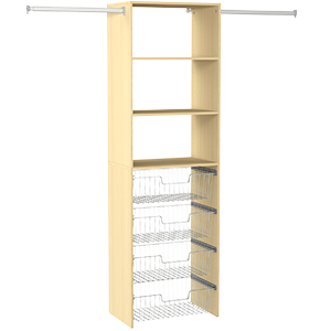 This adjustable double or triple door wardrobe storage solution provides a variety of options. Wide shelving provides space for larger accessories or everyday items while wire baskets allow clothes to breathe. The hanging rods can adjust to suit the size of your space.